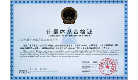 計(jì)量體系合格證書(shū)