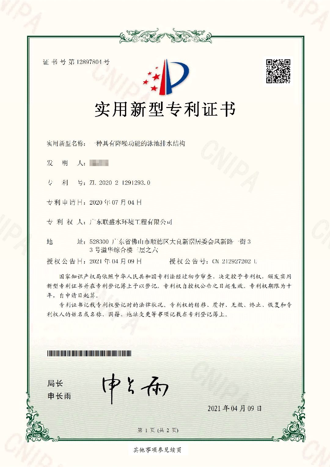 聯(lián)盛公司在泳池排水結(jié)構(gòu)等領(lǐng)域的技術(shù)造詣深厚,并獲得了《一種具有降噪功能的泳池排水結(jié)構(gòu)》和《一種用于游泳池溢水噪音消聲結(jié)構(gòu)》的專利證書。聯(lián)盛公司通過專利技術(shù)的實際應(yīng)用,有效減少泳池運營中的噪音問題,為用戶帶來更加寧靜舒適的游泳體驗。